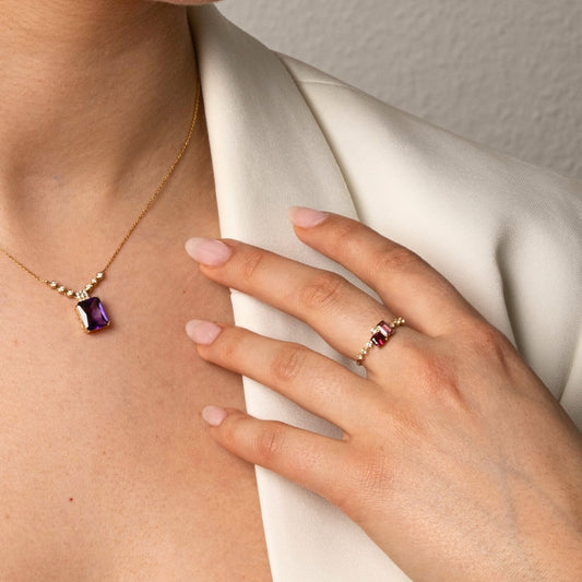 Our gold jewelry with colored gemstones and pearls are presented in an elegant, high-quality leather giftbox, designed to reflect the timeless beauty of each piece, ensures your jewelry is not only protected but also showcased with sophistication, making every unboxing moment truly special.