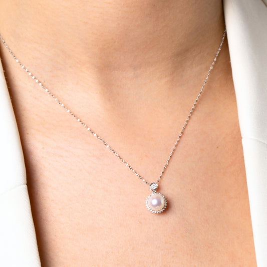 SUNNY Akoya pearl diamond pendant 18k white gold