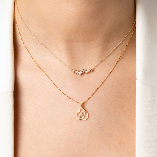 DANCING SWAN diamond pendant 18k yellow gold matt