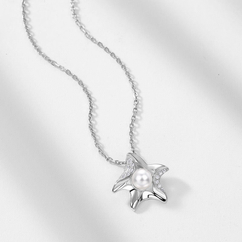 SEASTAR Perlevedhænget har en kulturperle i et delikat søstjernedesign. En perfekt blanding af naturlig charme og kystnær elegance — ideelt til at tilføje et roligt, sommerligt præg til dit look.